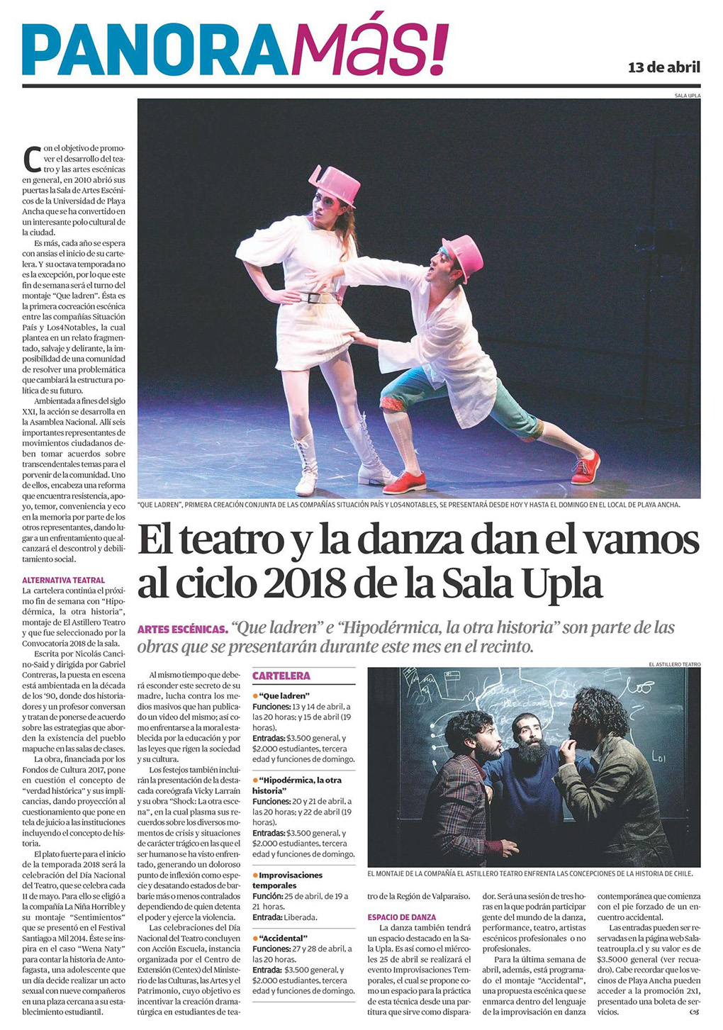 Fuente: El Mercurio de Valparaíso, sección PanoraMás! página 1, publicado el 13 de abril de 2018.
