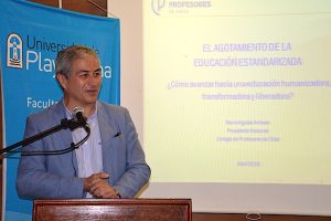 En la ocasión, el dirigente expuso la conferencia “La Educación estandarizada está agotada”, en la que comentó que el sistema educativo chileno dejó atrás su espíritu formador, para centrarse en una concepción educativa que funciona con la lógica de ránking y competencias, con categorías que vienen del campo de la economía, más que del ámbito de las ciencias de la educación.