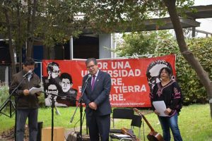 El rector Patricio Sanhueza, invitado especial a esta ceremonia, mencionó que nuestra casa de estudios se encuentra celebrando sus 70 años de existencia y en ese contexto ha ido evolucionando, teniendo momentos de grandes dolores y también de inmensas alegrías. “El encontrarme con ex estudiantes, quienes con la palabra lucharon por recuperar la verdadera universidad, es motivo de gran satisfacción. Tenemos este memorial que representa justamente ese tiempo y ese dolor y un compromiso con el nunca más, pues no queremos que haya otra vez en Chile una generación de personas a quienes se les interrumpió la vida por pensar diferente”.