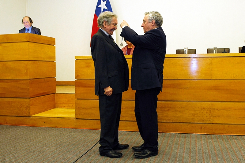 La decana Cárdenas destacó las casi dos décadas en las que el galardonado se desempeñó como profesor titular en el Departamento de Teatro de la Facultad de Artes, y calificó esta distinción como «un reconocimiento a su gran aporte en el campo del teatro y la difusión de la poesía, y a su extensa trayectoria como actor, director y formador de actores. Junto con su condición actoral sobresaliente, hay que destacar su magistral manejo de la voz hablada, dominio que lo llevó a las aulas y que hasta el día de hoy transmite a estudiantes de diferentes facultades».