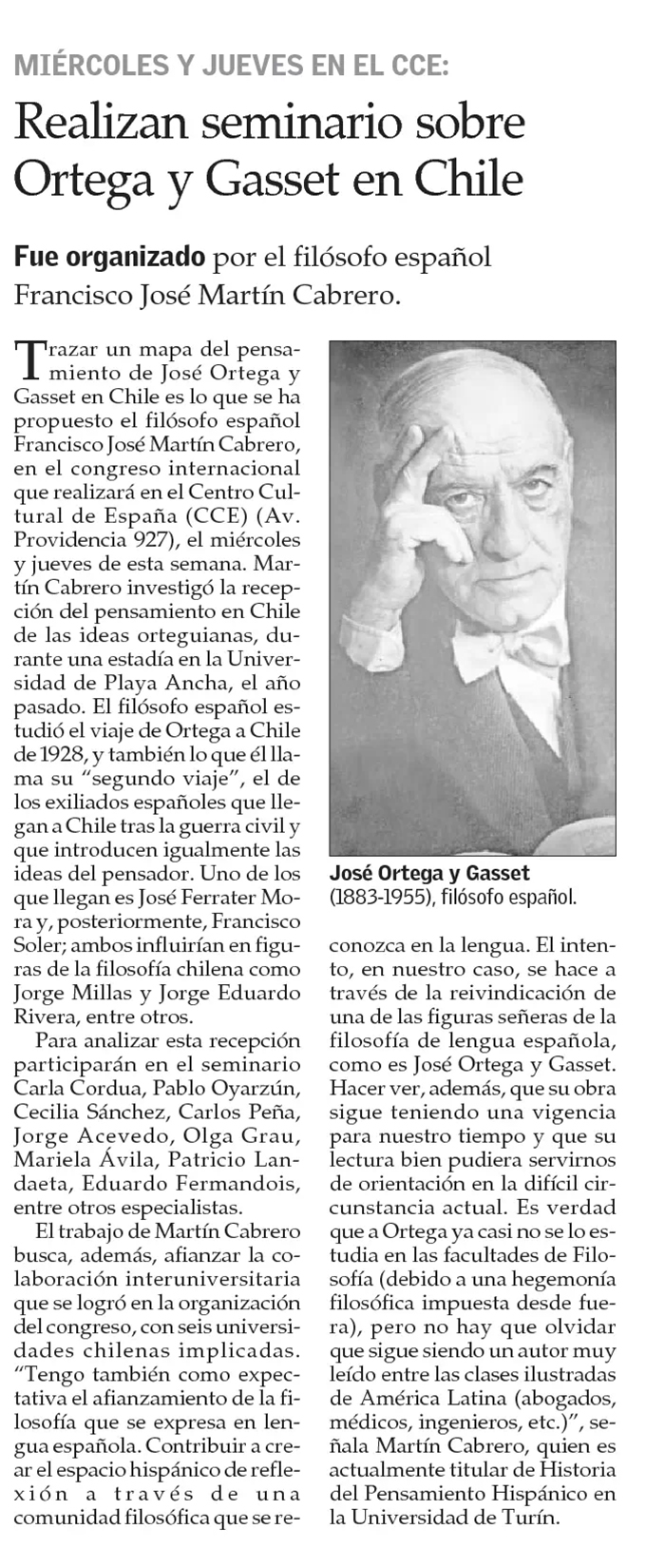 Fuente: El Mercurio, Cultura, página A 12, publicado el 28 de mayo de 2018.