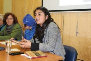 La académica Javiera Carmona fue la moderadora de este panel y explicó que los relatos contenidos en el libro desafían el discurso histórico dominante sobre la oposición a la dictadura en Chile, ya que revelan con toda intensidad y compromiso vital, la acción de mujeres que adoptan el feminismo como consigna de lucha en un contexto de la supresión de la actividad política formal.