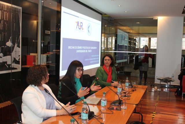 La iniciativa surgida desde el Consejo de Rectores, CRUCH, la Agrupación de Universidades Regionales, AUR, contó con el apoyo de la Comisión de Educación del Senado y de la Biblioteca del Congreso. Estuvieron presentes Yasna Provoste, Presidenta de la Comisión de educación del Senado, Aldo valle, rector de la Universidad de Valparaíso y vicepresidente ejecutivo del CRUCH, Patricio Sanhueza, Presidente de la Agrupación de Universidades Regionales, AUR, Blas Fernández, Coordinador del Área de Género, Sociedad y Políticas de Flacso Argentina , María Inés Salamanca, coordinadora en Chile de ONU Mujeres, entre otras autoridades.