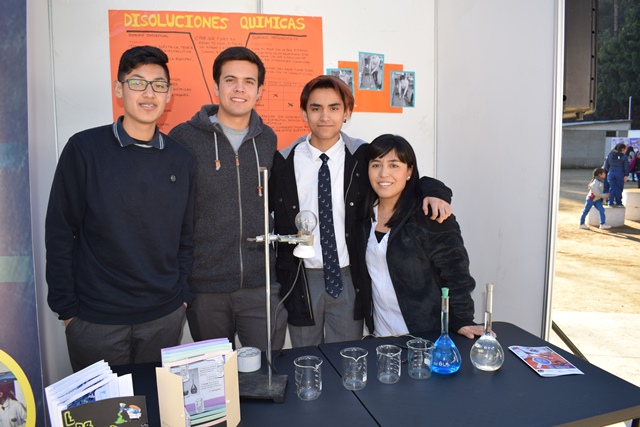 Preparados con la docente Mitza Aguayo,  los estudiantes de segundo medio Marcos Ríos, Karin Alarcón y Jorge Abarca del Liceo Maximiliano Salas de Los Andes expusieron sobre la conductividad eléctrica en disoluciones como agua potable, aguda destilada, agua de mar y sulfato de cobre. “Es interesante probar la efectividad de distintas sustancias, y conocer hoy otros proyectos le agrega dinamismo al aprendizaje”, sostuvieron.