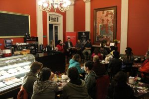 En una conversación abierta con el público, y con un café calientito, los asistentes pudieron conocer la importancia de los fósiles en la construcción de nuestro pasado, además de debatir y reflexionar sobre la importancia que tienen los restos paleontológicos.