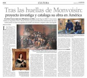 El proyecto “Monvoisin en América” se podría extender hasta 2021 y es histórico. Primero, porque la pesquisa es ardua: solo en Chile habría 300 cuadros suyos —de acuerdo a un catastro del historiador Jaime Cuevas—. Algunos ya están identificados en colecciones del Estado (70); otros estarían en manos de privados. Por su parte en Argentina existen cerca de 65 obras, en Brasil 8 y en Perú 18 registros. Todos son números preliminares, porque falta corroborar la información.