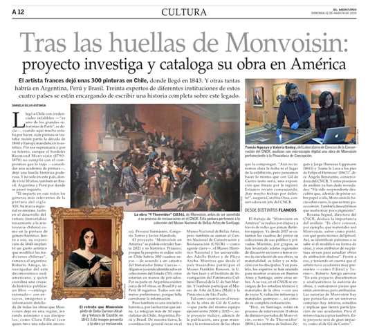 El proyecto “Monvoisin en América” se podría extender hasta 2021 y es histórico. Primero, porque la pesquisa es ardua: solo en Chile habría 300 cuadros suyos —de acuerdo a un catastro del historiador Jaime Cuevas—. Algunos ya están identificados en colecciones del Estado (70); otros estarían en manos de privados. Por su parte en Argentina existen cerca de 65 obras, en Brasil 8 y en Perú 18 registros. Todos son números preliminares, porque falta corroborar la información.