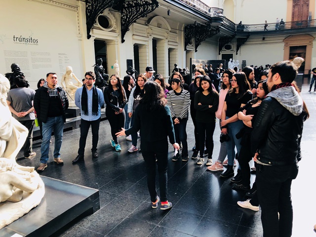 Tutores Par y estudiantes de los campus Valparaíso San Felipe de la Universidad de Playa Ancha, efectuaron una visita guiada por las dependencias y salones del Museo Nacional de Bellas Artes, ubicado en el Parque Forestal, donde apreciaron obras pictóricas, fotográficas y escultóricas de autores como Roberto Matta, Paz Irarrázaval y otros.