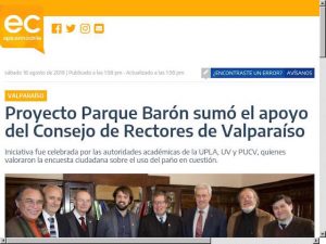 Quien también quiso interiorizarse y opinar acerca del proyecto Parque Barón, fue el Consejo de Rectores de Valparaíso, quienes se reunieron con el alcalde Jorge Sharp para escuchar la presentación del proyecto de carácter urbano, que pretende rescatar el sector Barón y Almendral, entre otros.