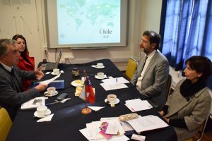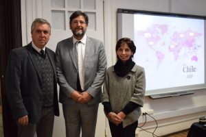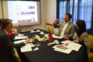 El director para América Latina de la Agencia Universitaria de la Francofonía (AUF), Gilles Mascle, visitó la Universidad de Playa Ancha y se reunió con el director de Relaciones Internacionales, Dr. José Manuel Olivares, y la directora del Departamento Disciplinario de Administración Turística Multilingüe, Ana María Guerra.