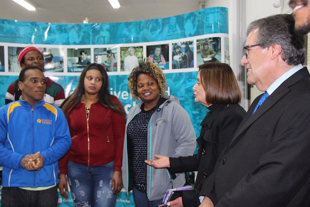 El recorrido lo hicieron guiados por Armando Mansilla Aguilera, coordinador del curso de Migrantes de la Fundación UPLA, quien explicó en detalle parte del trabajo que realizaron con los alumnos. En la ocasión, los acompañó la directora del organismo, Ana Auger, quien reiteró el compromiso que la fundación tiene con la inserción laboral, en la que también se incluye a los migrantes.
