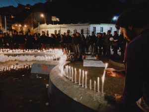 Durante la tarde-noche de este domingo un grupo de personas se reunió alrededor de la pileta Neptuno de la Plaza Aníbal Pinto de Valparaíso para recordar al estudiante Javier Olmos Chávez.