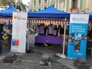 La Universidad de Playa Ancha fue representada por cinco estudiantes de la carrera de Nutrición y Dietética dirigidas por la docente y nutricionista, Sofía Coñuecar Silva. La profesional de la Facultad de Ciencias de la Salud explicó que como integrantes de la Comisión Regional Intersectorial de Vida Saludable en establecimientos educacionales han participado en todas las versiones de la Feria de Fiestas Patrias Saludables.