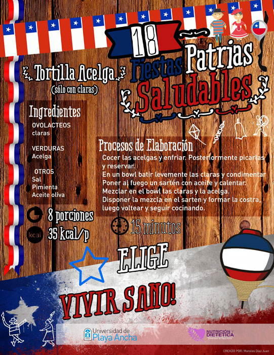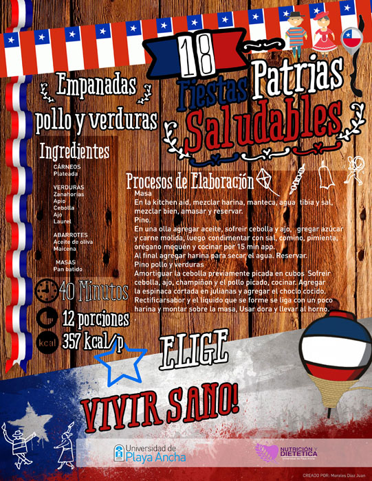 En esta oportunidad, “colaboramos con un stand de evaluación nutricional y educación alimentaria-nutricional, instancia donde se entregaron recomendaciones generales sobre alimentación, incluyendo tips y recetas saludables para este 18 como tortilla de acelga, empanada de pollo y verduras, salsa de pimiento asado y carne mechada”, detalló la docente.