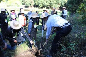 Los propios rectores encabezaron el lanzamiento del programa de reforestación, plantando con sus manos los primeros ejemplares. Como los demás participantes en la tarea, usaron delantales y gorros especiales para protegerse.