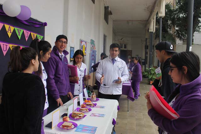 Hidratación, consumo de frutas y verduras, pescados y mariscos, desayunos saludables, práctica deportiva, entre otras temáticas, formaron parte de los stand que los estudiantes del tercer año de la carrera de Nutrición y Dietética, de la Facultad de Ciencias de la Salud de la UPLA, realizaron en el marco del Día Mundial de la Alimentación.