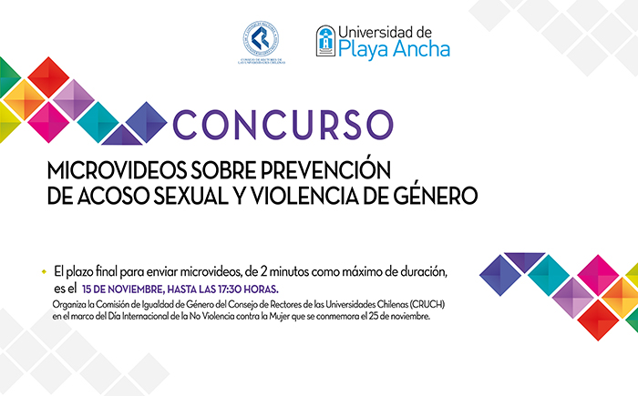 De este modo, hacen una invitación a todos los estudiantes regulares de la Universidad de Playa Ancha a participar con un microvideo, que no supere los dos minutos de duración, que recree situaciones de la vida universitaria en que se ponga en valor la prevención o el rechazo absoluto al acoso sexual y la violencia de género.