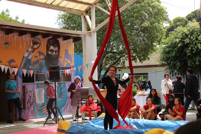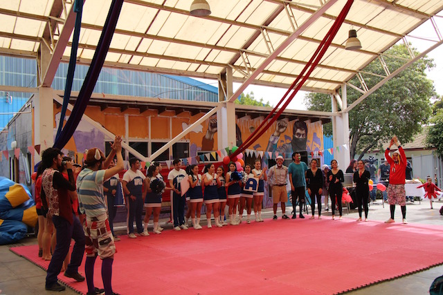 En el patio techado, estudiantes de la UPLA, liderados por Matías Orellana Recabarren, recrearon un circo que contó con presentaciones de cheerleaders, payasos, acrobacias en telas y acroyoga, números que fueron disfrutados por grandes y chicos.