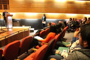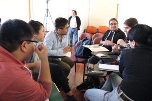 Es así como durante la mañana trabajaron en grupo para desarrollar un stand up relacionado con nociones matemáticas como por ejemplo con la enseñanza de catetos, hipotenusa, ángulo recto, triángulos, áreas, entre otros. Definido el tema debieron buscar ideas humorísticas relacionadas con él e incorporar un problema matemático para luego presentarlo en el Aula Dr. Félix Morales Pettorino.