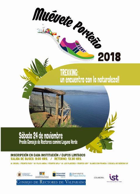 Una jornada para compartir y disfrutar de sano entretenimiento en un ambiente natural, tendrán los funcionarios y estudiantes de la Universidad de Playa Ancha y las demás instituciones pertenecientes al Consejo de Rectores de las Universidades de Valparaíso (CRUV). Se trata de “Muévete Porteño”, actividad que en años anteriores se realizó en el centro de Valparaíso, pero este sábado 24 de noviembre se trasladará al Fundo Quebrada Verde, parte alta de la ciudad.