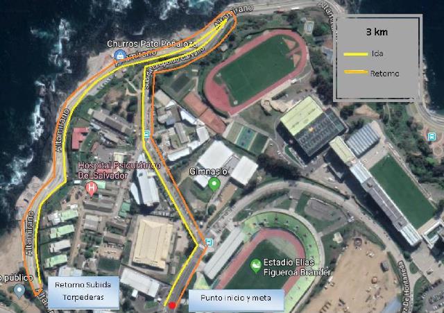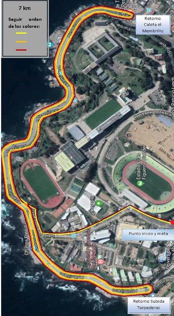 El trazado de los 3K considera Subida Carvallo, Avenida Altamirano y Torpederas, en tanto que el de 7K va por Avenida Altamirano, pasando dos veces por caleta El Membrillo y Torpederas hasta llegar al punto de inicio.