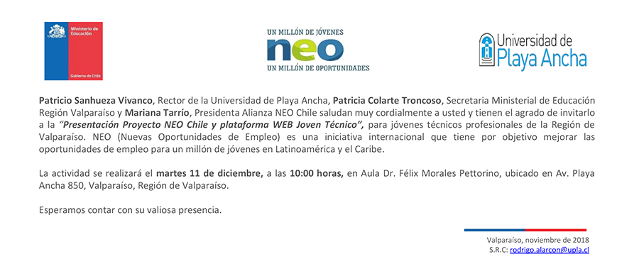 11 de diciembre: Presentación Proyecto NEO Chile y plataforma web Joven Técnico