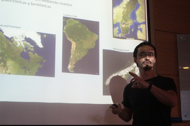 En la oportunidad, el doctor Salcedo-Castro expuso sobre sus estudios de la circulación y transporte de sedimentos en ambientes glaciomarinos y fiordos glaciales de la Patagonia. En dichas presentación, el investigador destacó la necesidad de integrar la glaciología con la oceanografía para poder estimar de mejor manera el efecto del cambio climático en ambientes marinos que están aledaños a zonas como los campos de hielo patagónicos.
