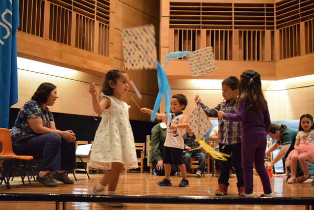 Ejemplo, de ello es que el ciclo intermedio interpretó tres canciones infantiles mediante la percusión de claves; los talleres integrales de la sala 3 presentaron su experiencia con la obra “volantines” de Nemesio Antúnez, con las rondas infantiles y con el cantautor nacional, Edson Guerrero, y la canción “A tí Valparaíso”. En tanto, la sala 4 decidió trabajar en la Danza Húngara N° 5 de Brahms.