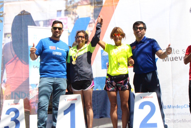 La actividad, que incluyó zumba, concursos y regalos, finalizó con la premiación para los mejores participantes de ambos circuitos, en distintas categorías, las que consideraron Capacidades Diferentes, Seniors Varones y Seniors Damas (entre otras). En esta última categoría, destacó la participación de la atleta seniors Dora González Baquedano, quien ha competido en distintas instancias tanto nacionales como internacionales.