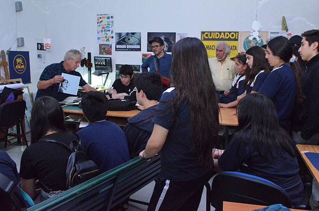 “Los chicos que nos acompañaron son de tercero básico a tercero medio y que participan en talleres de cerámica, dibujo, fotografía, pintura y música. Entonces esta gira les sirve para que experimenten y contextualicen sus procesos de creación desde donde se forman los artistas y los profesores de música”, dijo.