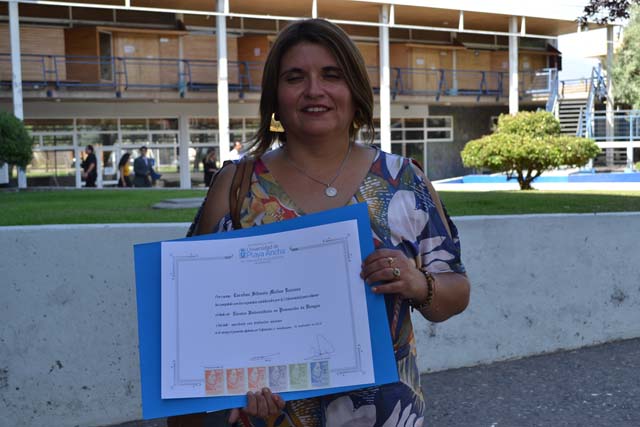 Carolina Molina Lazcano trabaja desde hace veinte años en la Municipalidad de San Felipe, donde es la encargada de la Oficina de Emergencia. Obtuvo su título de Técnico en Prevención de Riesgos, gracias a una beca que le otorgó la universidad, en virtud de un convenio con el municipio: “Para mí es un gran logro, lleno de sacrificios, dejando de lado a la familia y respondiendo a mi trabajo en la Municipalidad. Estoy muy agradecida de esta oportunidad que me dieron ambas instituciones. Además estoy muy contenta porque di el examen para obtener mi título el 19 de octubre y el 29 de noviembre ingresé a estudiar ingeniería en otra institución y me han reconocido todos los ramos que cursé en la UPLA”.