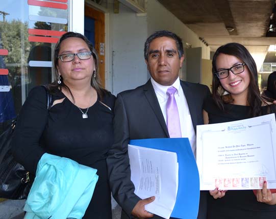 Igual de orgullosa se mostró Soledad Tapia Olivares, quien fue distinguida como la mejor egresada de su generación: “Para mí es un orgullo obtener el título y haber sido reconocida como la mejor egresada. Ha sido un esfuerzo grande, soy madre un niño, pero el apoyo de la familia, especialmente de mis padres fue fundamental. Esto es como ver un sueño cumplido”.