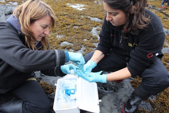 “Las actividades de investigación comenzaron con el muestreo en terreno de algas verdes (Monostroma hariotti), algas rojas (Pyropia utricularis, Iridaea cordata y Gigartina skotbergii) y algas pardas (Adenocystis endiviifolia), especies de alta importancia ecológica para el mantenimiento del equilibrio en el ecosistema intermareal de la península Antártica. En el laboratorio de la Base profesor Julio Escudero del INACH, ubicada en la península Fildes de la isla Rey Jorge, someteremos las especies de macroalgas a incrementos de temperatura, según predicciones para fines del siglo XXI del Panel Intergubernamental en Cambio Climático (IPCC), para luego desarrollar una serie de mediciones a distintos niveles de organización biológica”, afirmó desde el Continente Blanco, la Dra. Paula Celis Plá.
