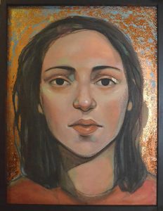 “La obra en general retrata y se trata de una imagen netamente femenina. Lo que intenté hacer fue que la mirada del personaje se encuentre con la del espectador, y que éste busque de manera natural el reflejo de sí mismo en los ojos del rostro que mira”, explicó Gabriela Flores.