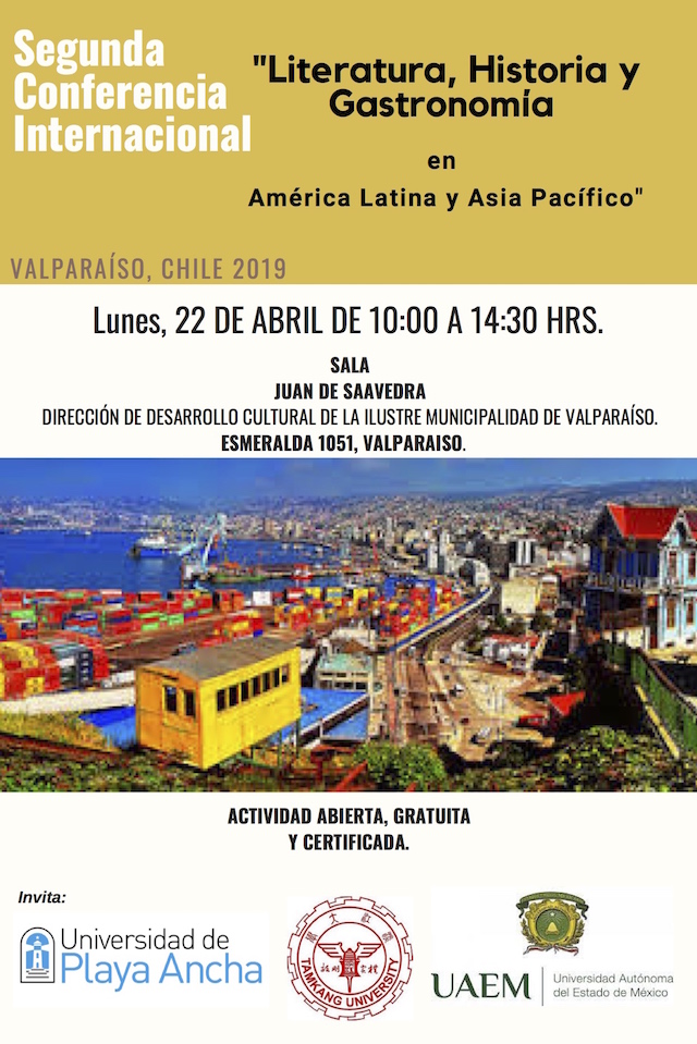 “Literatura, Historia y Gastronomía en América Latina y Asia Pacífico”, se denomina la segunda conferencia internacional, que organiza la Universidad de Playa Ancha, en conjunto con la Universidad Autónoma del Estado de México y la Universidad Tamkang de Taiwán.