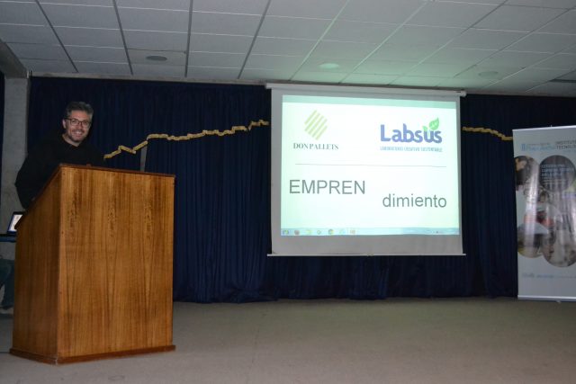 El expositor, de 33 años, relató a los estudiantes su historia de vida y la forma en que surgió su emprendimiento, partiendo de la reutilización y reciclaje de madera de pallets, para la fabricación de todo tipo de muebles y otros artículos. Los pallets son cajas que se utilizan en la industria, especialmente del área agro-frutícola.