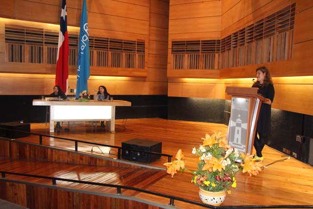 La primera panelista fue la TO María Paz Sepúlveda Barrientos, Magíster en Docencia para la Educación Superior y coordinadora de vinculación con el medio de la carrera de terapia ocupacional de la Universidad Andrés Bello, sede Concepción. Su ponencia trató sobre el arte como herramienta de inclusión para personas con discapacidad: “Vengo a devolver la mano, por haberme formado en esta universidad y proporcionarme las herramientas para trabajar desde un ámbito social y comunitario en el cual me desenvuelvo”.