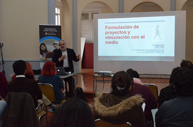 En el contexto de las actividades de vinculación con el medio insertas en las exigencias del proceso de acreditación, la carrera de Pedagogía en Artes Plásticas de la UPLA desarrolló el seminario “Formulación y evaluación de proyectos en educación artística”, que contó con las ponencias del Mg. y profesor de la Universidad de Chile, Juan Carlos Lepe, y de la académica formada en la UPLA y gestora cultural Marietta Barattini.