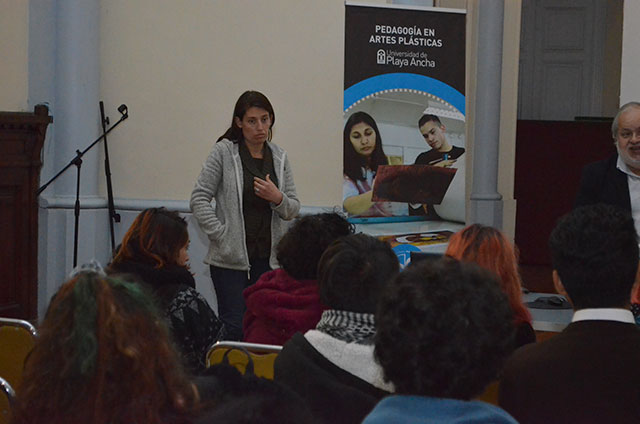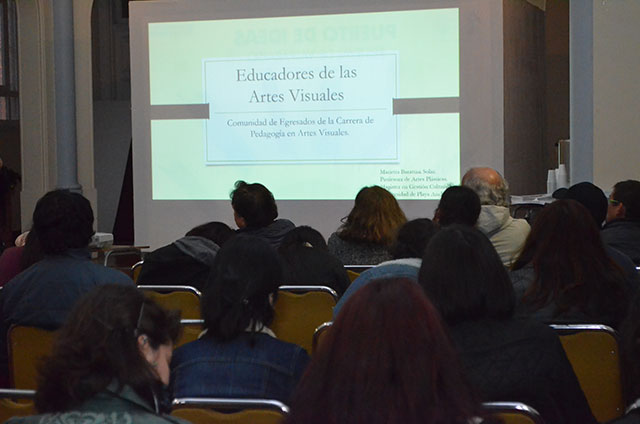 “Educadores de las artes visuales: Comunidad de egresados de la carrera de Pedagogía en Artes Visuales”: Estuvo a cargo de la profesora de artes plásticas y gestora cultural Marietta Barattini Solar, quien enfocó su ponencia en la presentación de un pre-proyecto para formar una agrupación con titulados y estudiantes de quinto año de la carrera de Pedagogía en Artes Plásticas de la UPLA.
