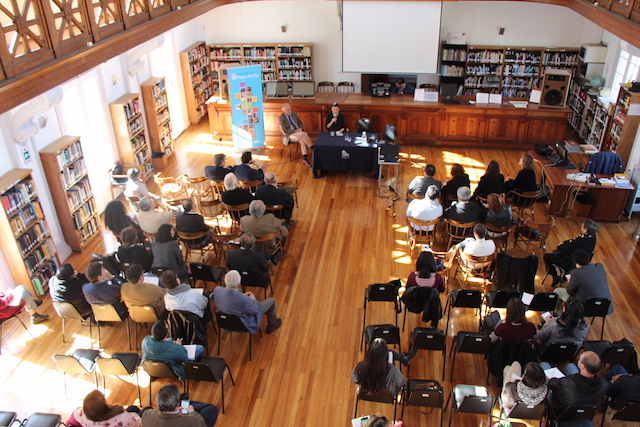 El conversatorio, que contó con la presencia de autoridades, especialistas del área académica y representantes políticos de países vecinos, se realizó en la Biblioteca Santiago Severín, que dirige María Eugenia Báez Vásquez, quien también estuvo presente en la cita.