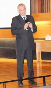 Previo a su presentación, se dirigió a los presentes el rector Patricio Sanhueza Vivanco, quien junto con valorar la presencia del experto, destacó la importancia de anticiparse a los fenómenos, a fin de responder de mejor forma a lo que ocurre en el entorno.