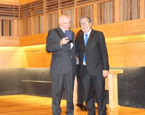 La ceremonia inaugural, que contó con la interpretación en clavinova del académico Nicolás Galaz García, de la Facultad de Arte, concluyó con la entrega que hizo el rector Sanhueza a Jorge Yutronic de la medalla Universidad de Playa Ancha y del “Nuevo diccionario ejemplificado de Chilenismos y de otros usos, diferenciales del Español de Chile”, del recordado académico Félix Morales Pettorino.