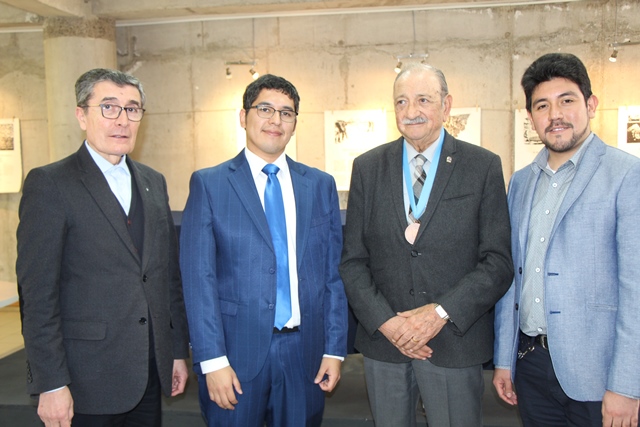 El rector Patricio Sanhueza Vivanco junto al secretario general, Jorge Sánchez Valencia, otorgaron la máxima distinción que confiere la institución, al reconocido catedrático, crítico e historiógrafo literario de prestigio nacional e internacional.