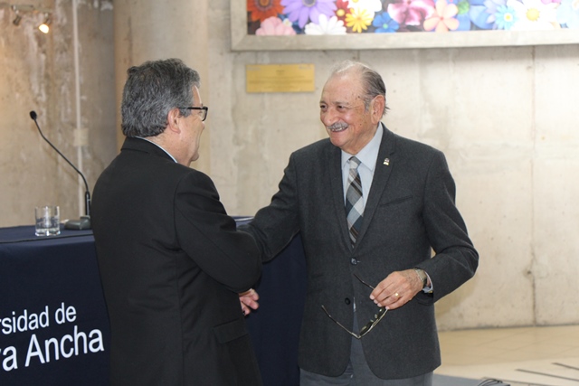 El rector Patricio Sanhueza destacó la figura humanista e intelectual de Cortés. Un académico de gran cultura, visión y comprensión de la realidad.