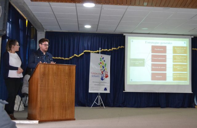 Los terapeutas del Programa Casa Azul de la Fundación Soñarte, Ninoska Prado y Mauricio Aguilera fueron los encargados de exponer el tema “Qué es el TEA, derribando mitos”.