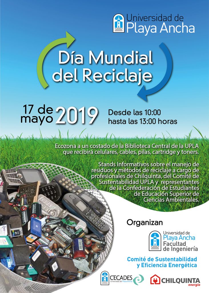 El Comité de Sustentabilidad y Eficiencia Energética junto a la Facultad de Ingeniería de la Universidad de Playa Ancha y Chilquinta Energía se han unido para celebrar el Día Mundial del Reciclaje el próximo 17 de mayo.