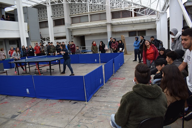 Alumnos y trabajadores alentaron a los participantes, mientras los últimos desplegaban sus habilidades y tácticas para avanzar a las etapas clasificatorias del torneo, según el sistema de llaves.