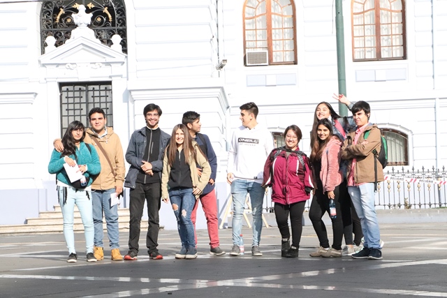 Los estudiantes caminaron por calle Prat, reconociendo allí los edificios institucionales de la ciudad, tales como bancos, notarías, correo, registro civil y ex edificio de la bolsa.