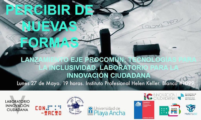 En este contexto, el próximo lunes 27 de Mayo de 2019 se lanzará el Eje Cultura del Procomún y las Tecnologías para la Inclusividad del Laboratorio para la Innovación Ciudadana. Esta actividad se realizará a las 19.00 horas en el Instituto Profesional Hellen Keller (Blanco Nº1099), Valparaíso.