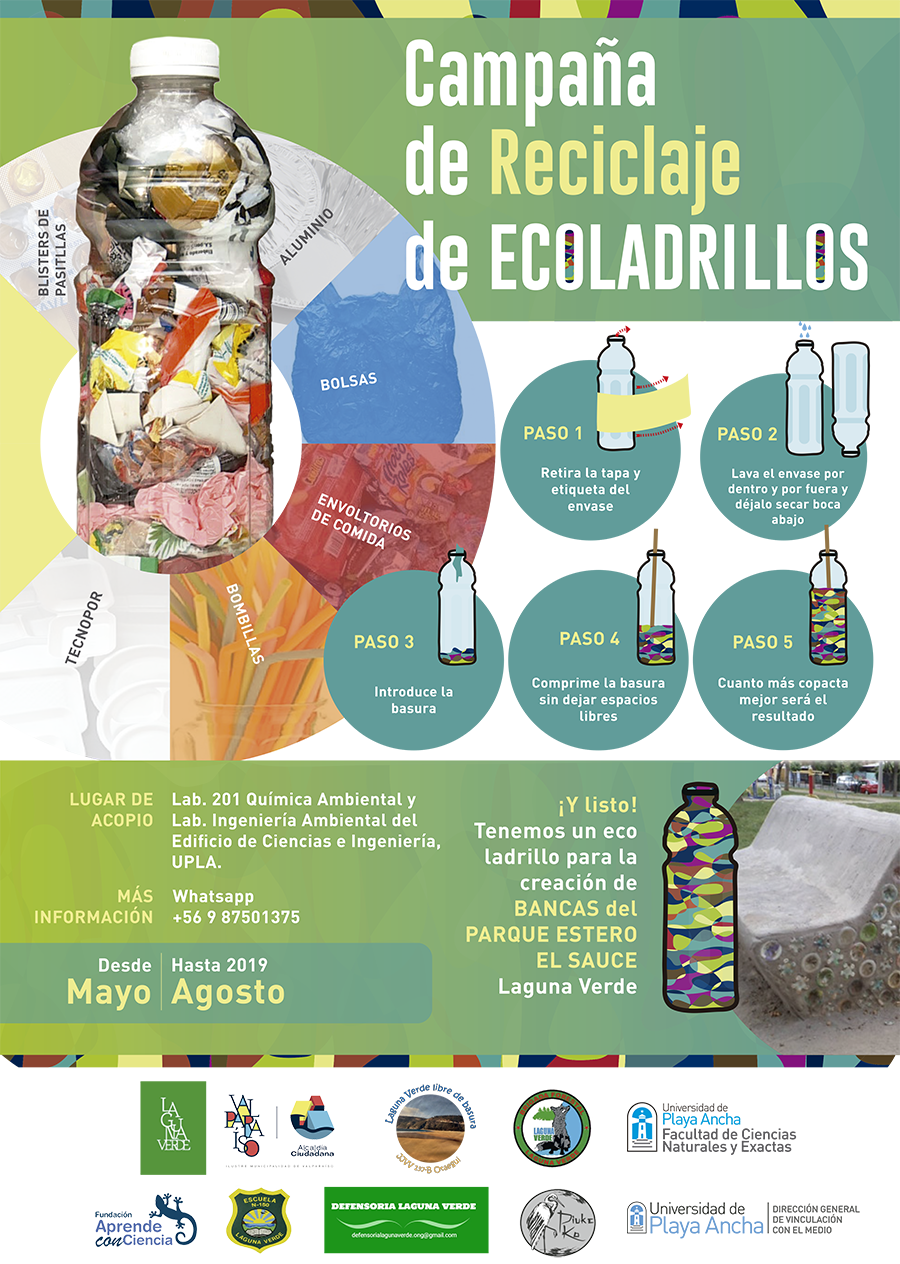 Las facultades de Ingeniería y Ciencias Naturales y Exactas de la Universidad de Playa Ancha iniciaron una campaña de recolección de ecoladrillos en el marco del proyecto “Puesta en Valor del Humedal estero El Sauce, de la localidad rural de Laguna Verde, Valparaíso”, que lidera la Dra. Cecilia Rivera Castro.